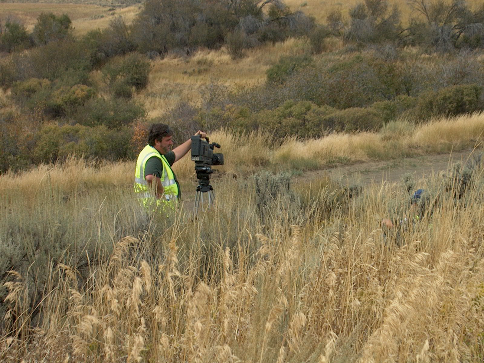A camera guy taking a break between cars. (81/92)