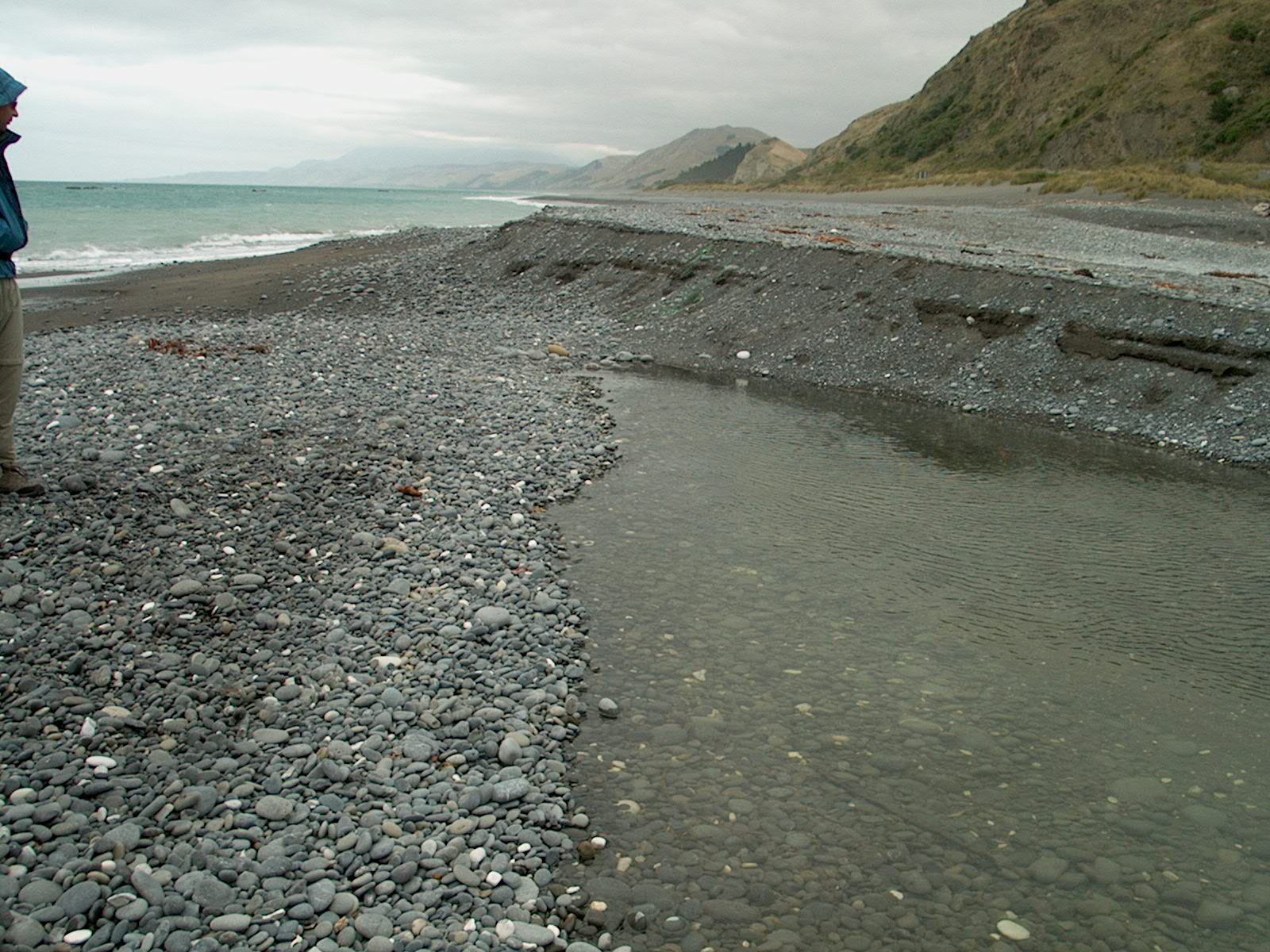 But it is actually running _under_ the stones and comes out the other side. See the dark spot in front of Bob? (108/113)