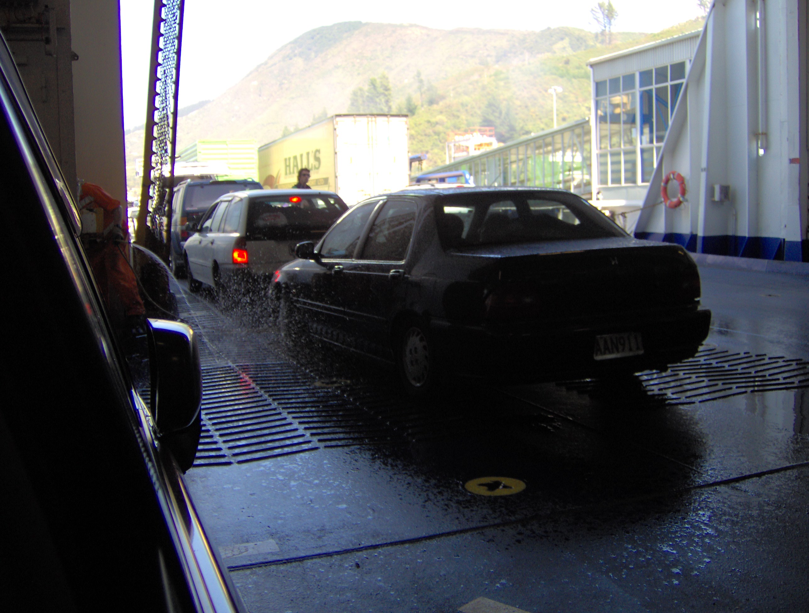 The cars that were out on deck get hosed off (50/113)