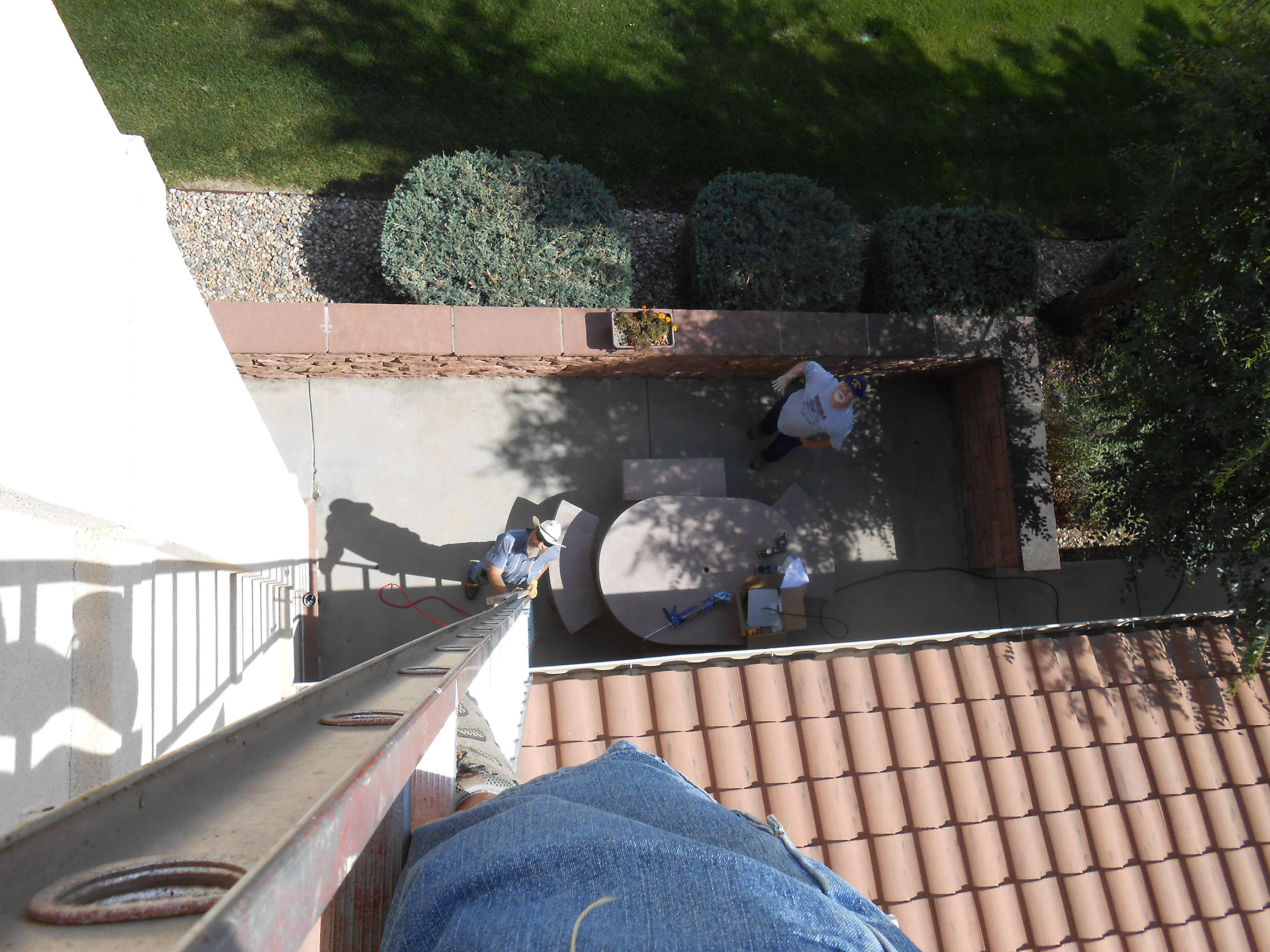 The view down from the top of the 32-foot ladder. (1/18)