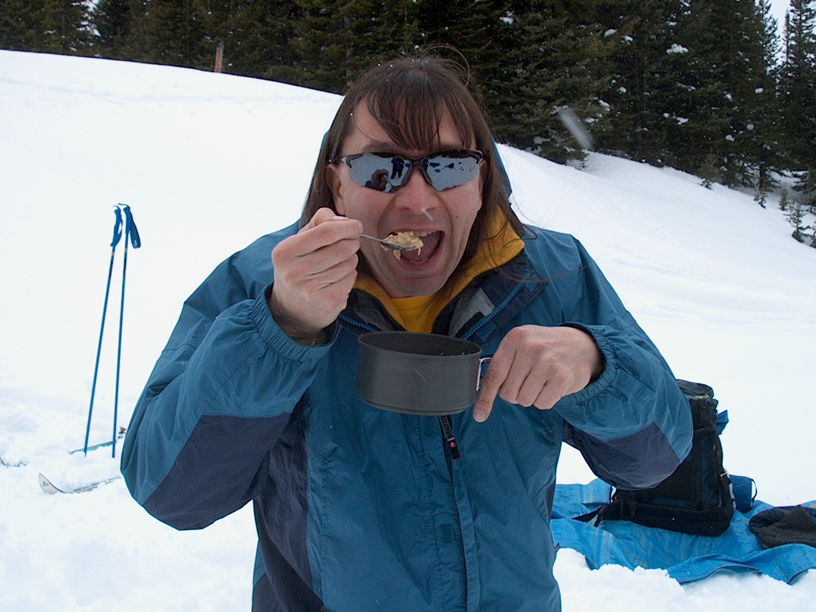 Yumm hot oatmeal - apple cinnamon! The streaks are falling snow. (21/79)