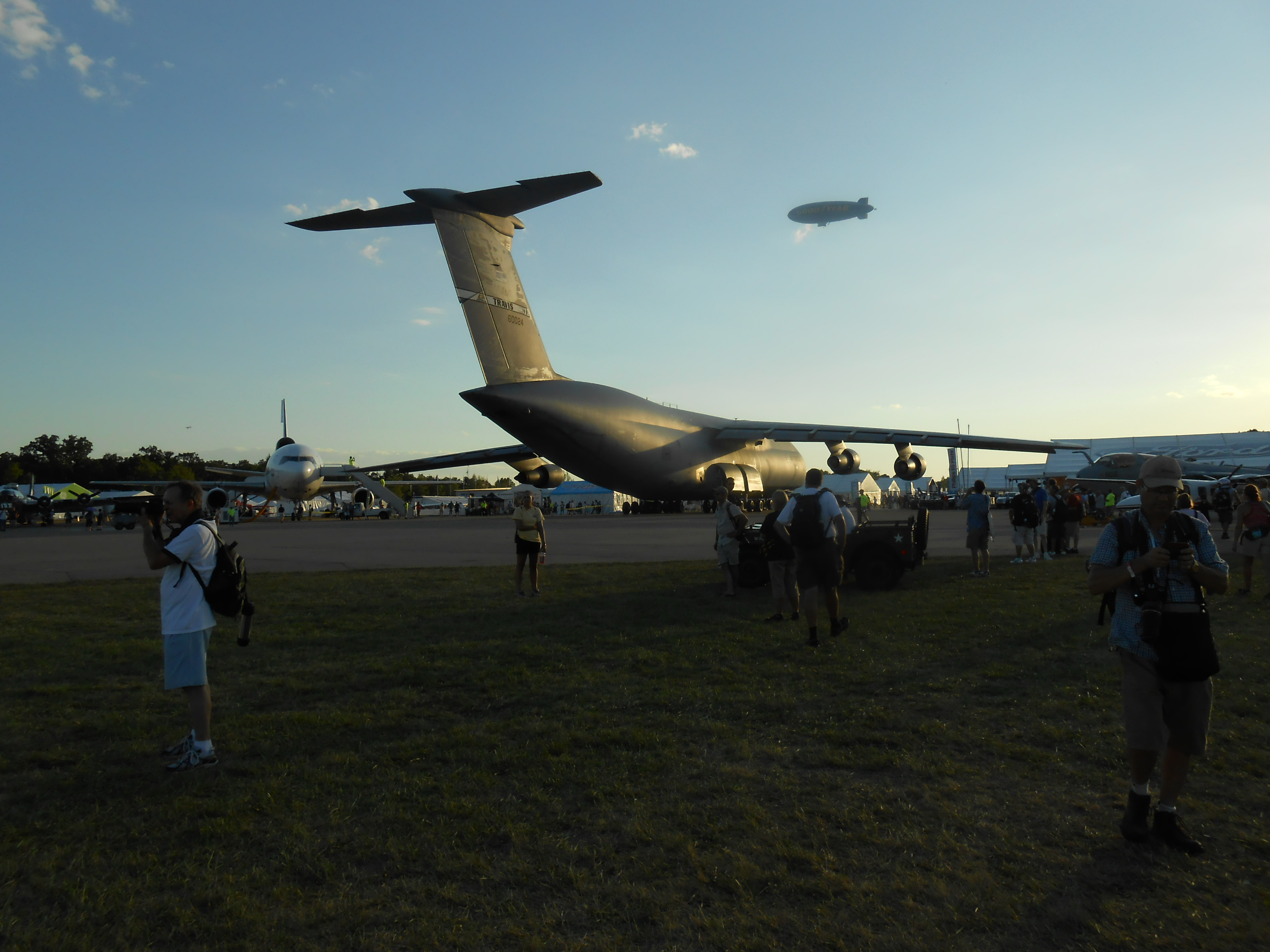 and a C5 galaxy, with the goodyear blimp above, and a now-small-looking DC-10 to the C5's left with a B17 on the far left. (49/70)