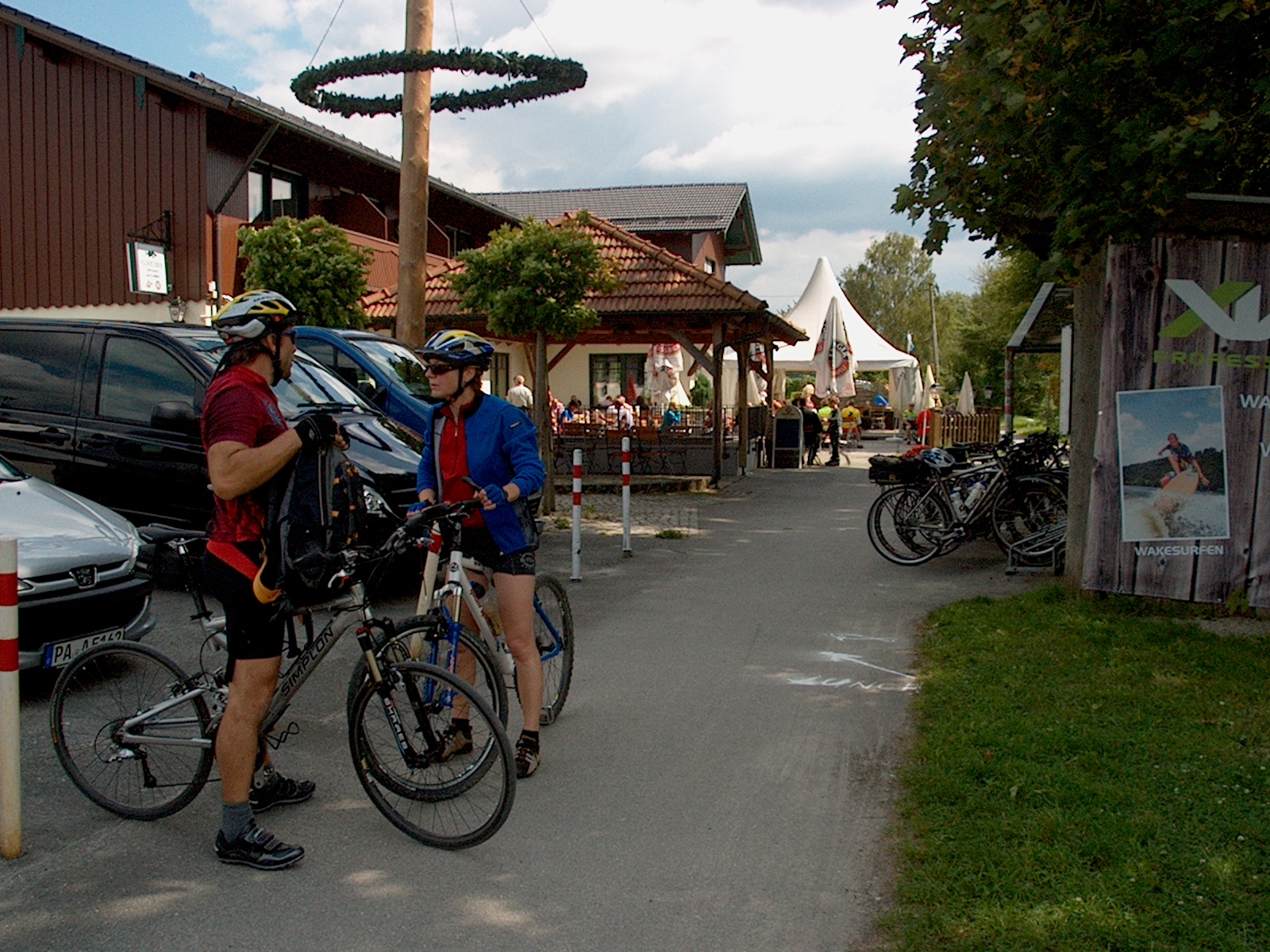 On the bike path, arrow for lunch at the cafe on the left. (50/127)