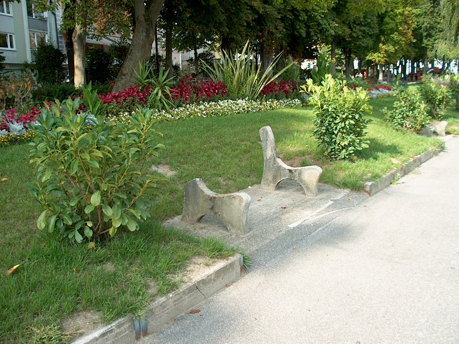 One of the few reminders of the horrific floods that came through here just two months ago in June. Benches aren't rebuilt yet but most everything else is already rebuilt or under construction. (81/127)