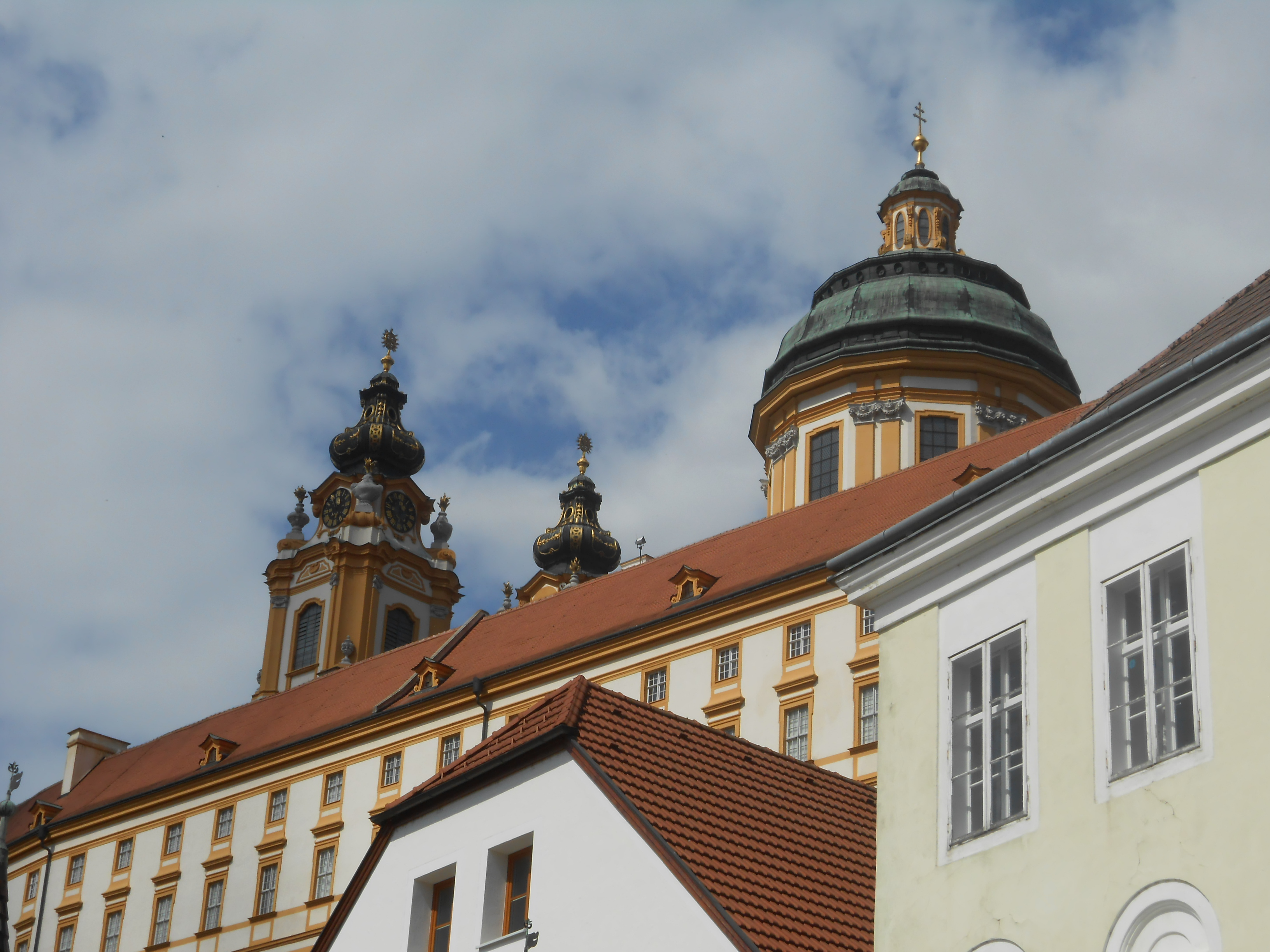 Looking back at the abbey as we leave Melk. (33/125)