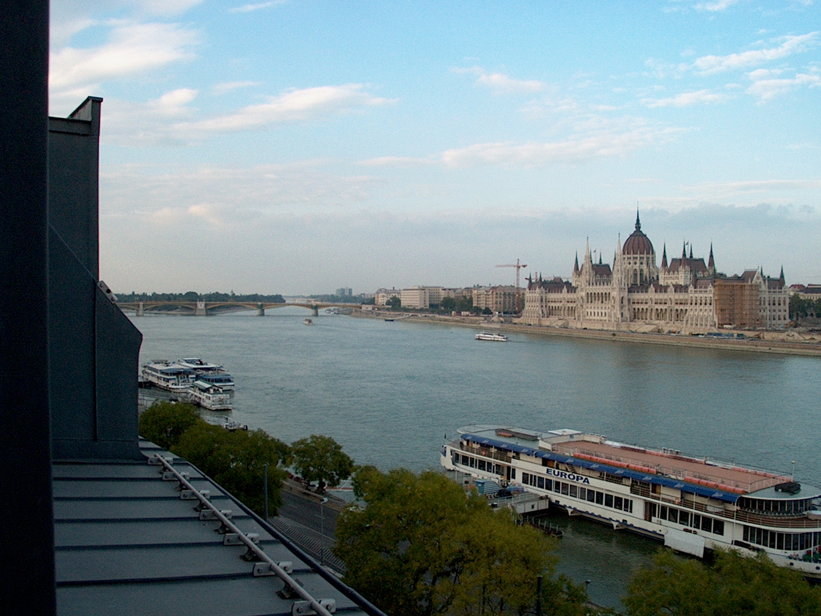 Looking far upstream at the middle island of the Danube with Margit island and the park we rode through. (78/89)