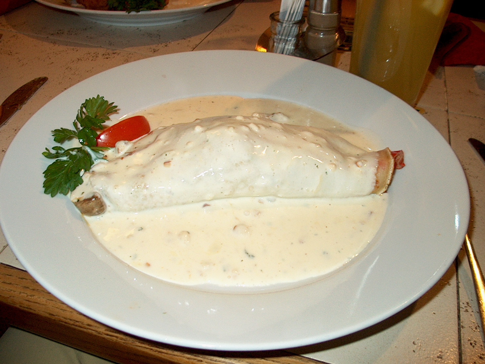 Veggie crepe with amazing smoked cheese sauce. (68/71)