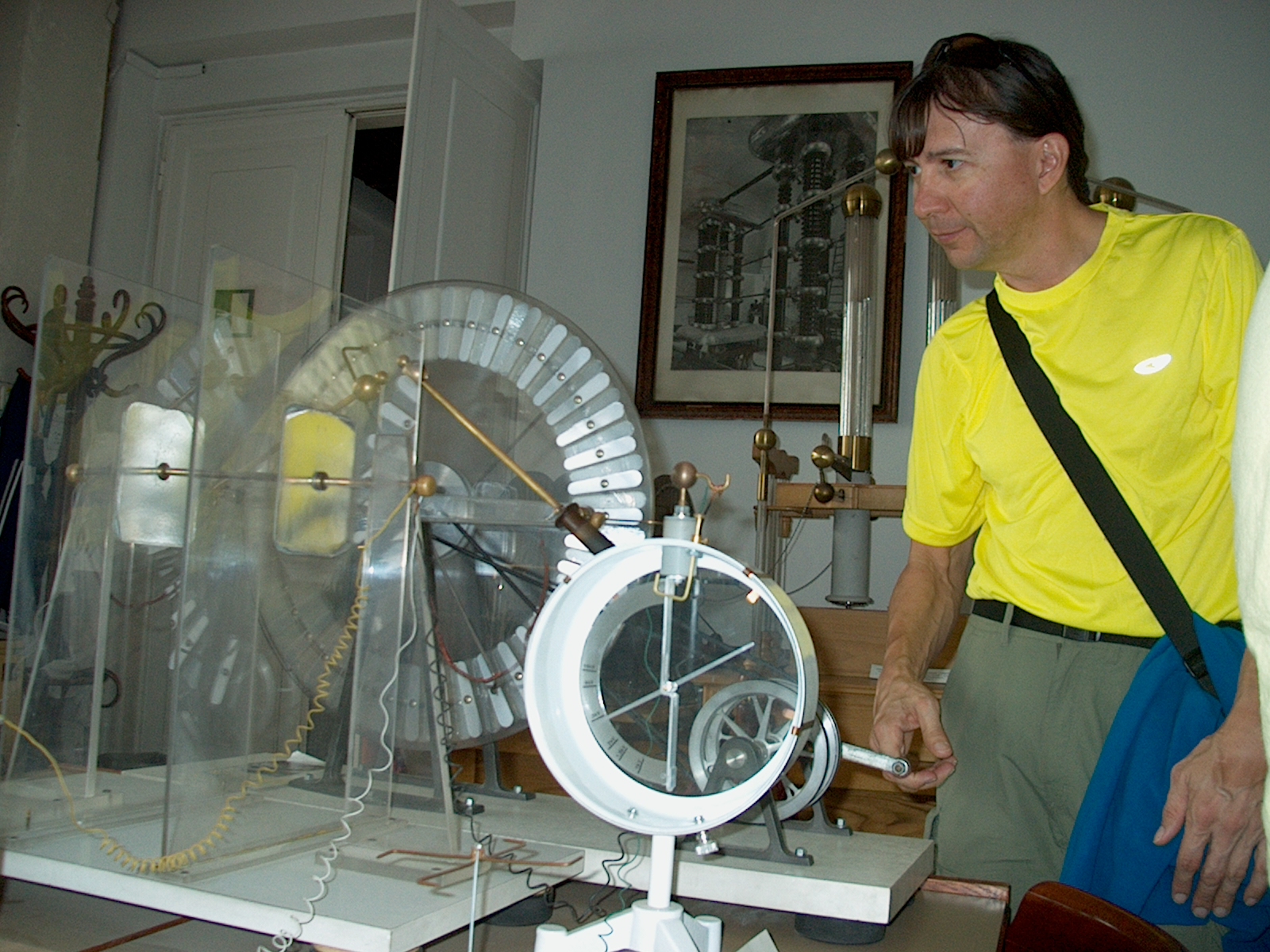 Bob winds up the Wimshurst electrostatic generator! (21/35)