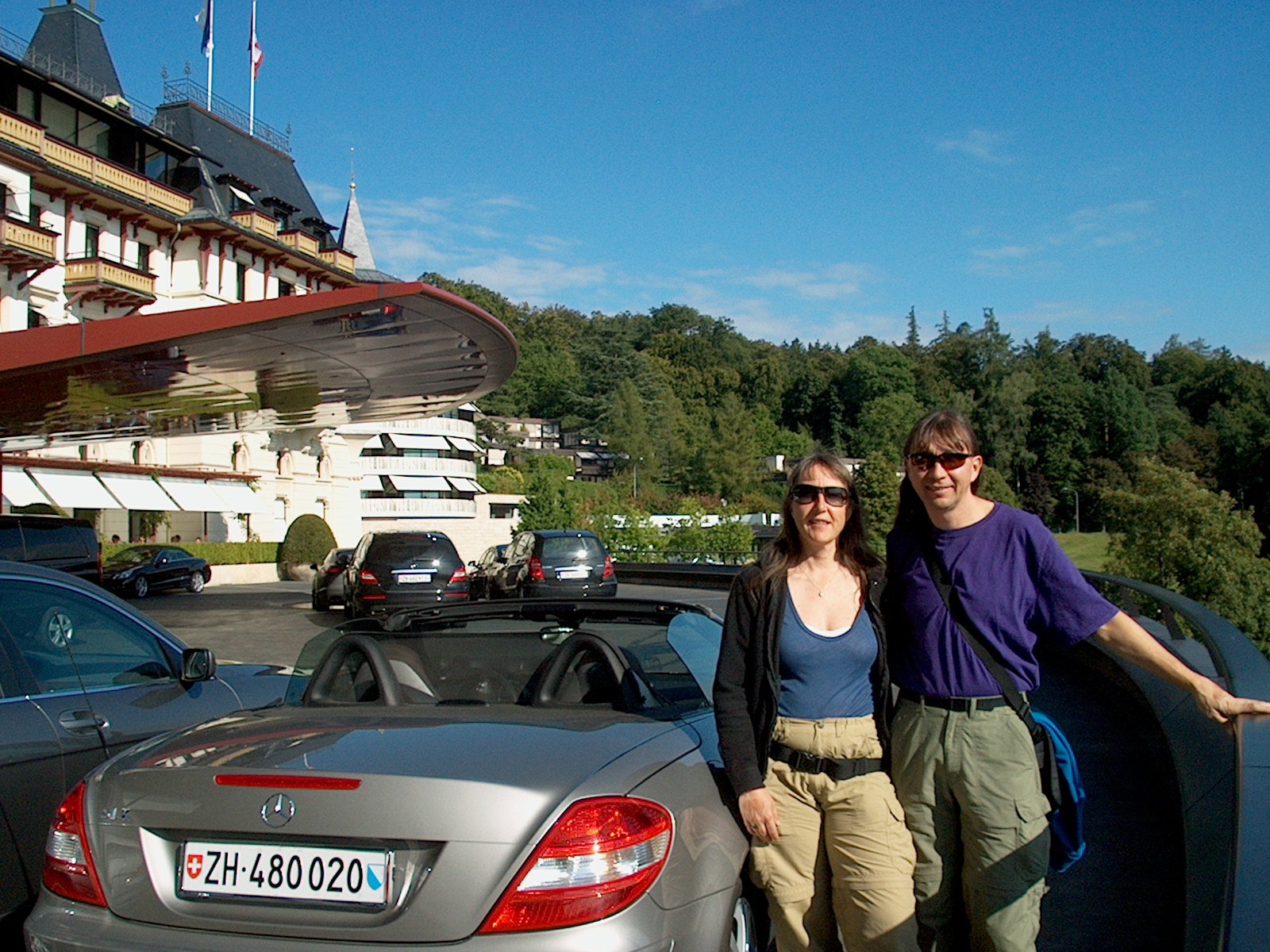 Bob and Sue with a nice car at the Dolder Grand hotel, Zurich. (34/55)