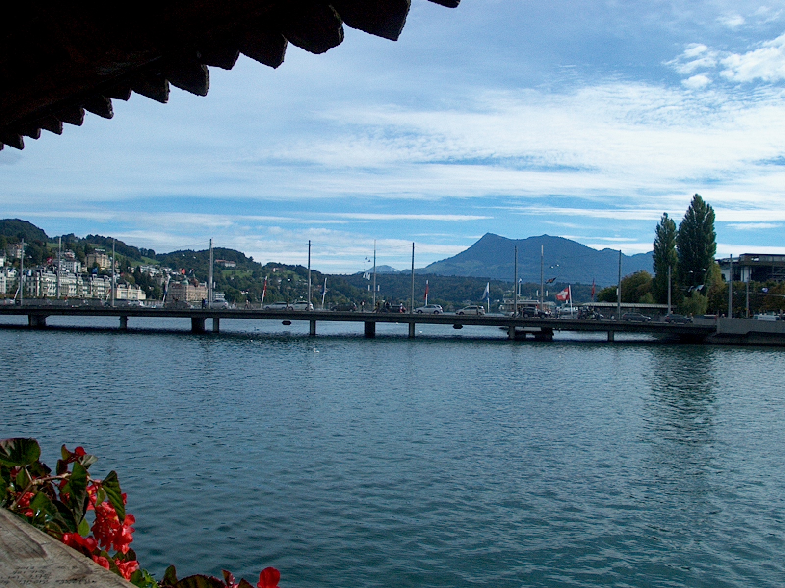 From the covered bridge, looking out to Lake Lucerne. (6/84)