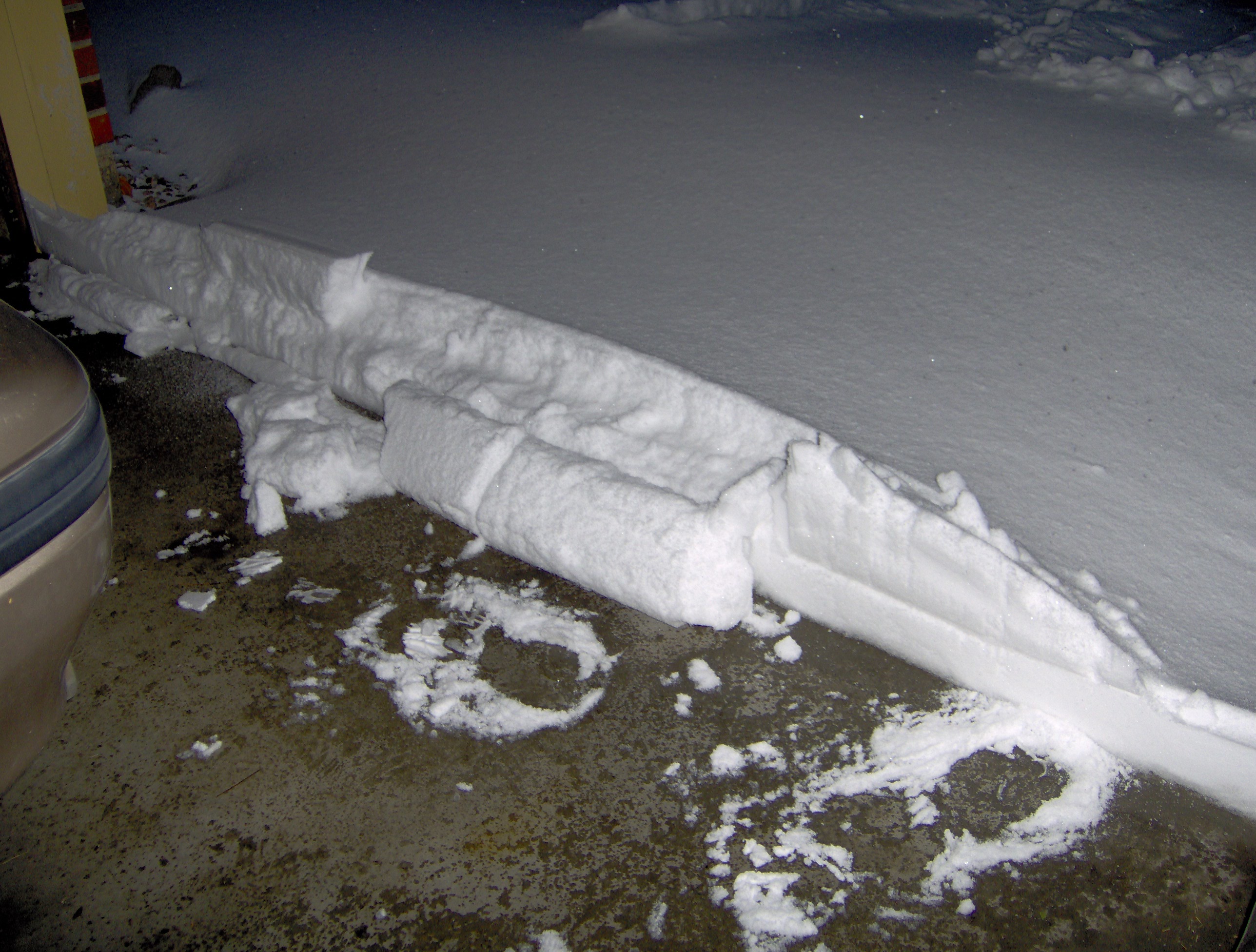 Wednesday night when I opened the garage door I found that it had already started to drift up. I cleared this little area free of the door so that it would not pack in too much for the next day. (2/33)